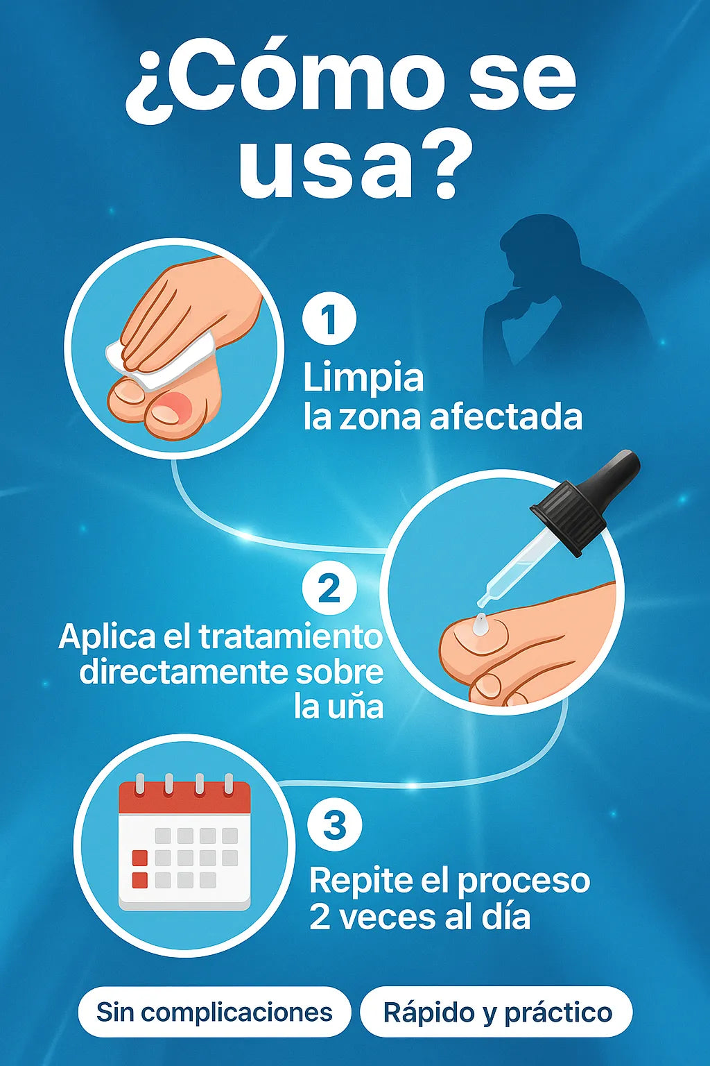 Método de aplicación: Aplicar 2 veces al día sobre la uña y área afectada.